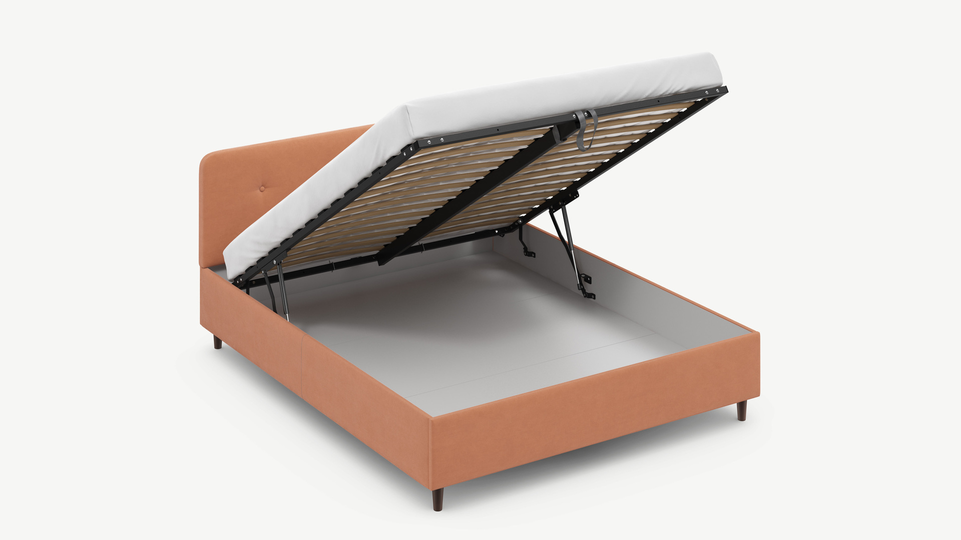 • Скрытая под основанием вместительная емкость без внутренних перегородок позволяет использовать всю площадь подкроватного пространства для хранения вещей.
