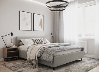 Фактура обивочного материала подбирается дизайнерами с учетом технологических и стилевых особенностей кровати.