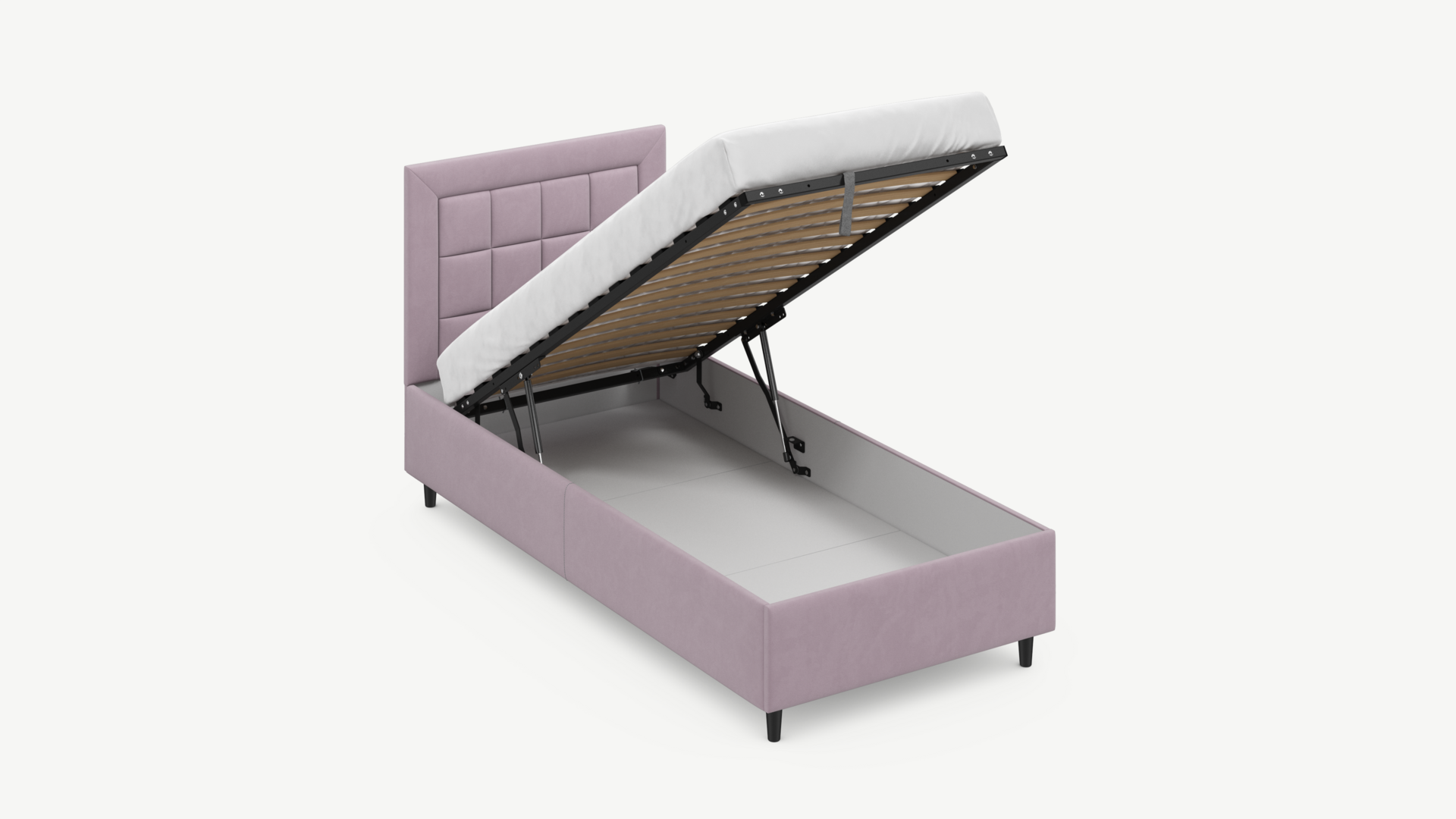 Регулируемый подъемный механизм с газовыми амортизаторами позволяет плавно и бесшумно поднимать и опускать спальное место.