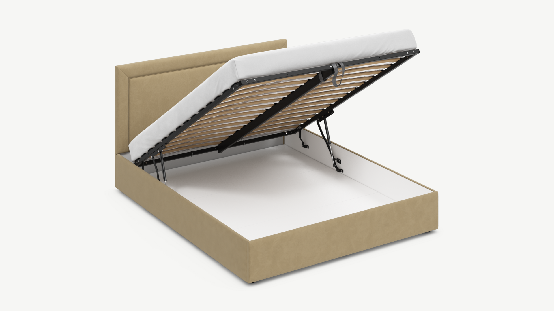 • Скрытая под основанием вместительная емкость без внутренних перегородок позволяет использовать всю площадь подкроватного пространства для хранения вещей.