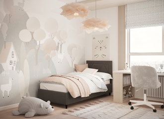 Фактура обивочного материала подбирается дизайнерами с учетом технологических и стилевых особенностей кровати.