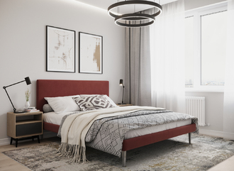 Кровать MOON FAMILY 1256 демонстрирует безупречный баланс изящных пропорций. Лаконичное изголовье, узкие царги и высокие опоры создают эффектный образ, привносящий в пространство спальни стильный и яркий акцент.