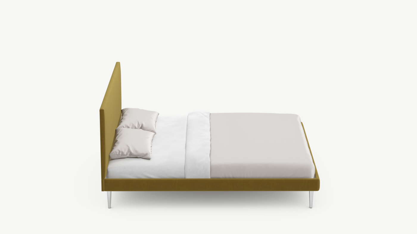 Кровать MOON FAMILY 1256 демонстрирует безупречный баланс изящных пропорций. Лаконичное изголовье, узкие царги и высокие опоры создают эффектный образ, привносящий в пространство спальни стильный и яркий акцент.