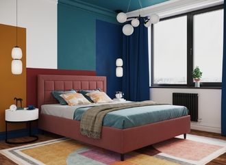 Фактура обивочного материала подбирается дизайнерами с учетом технологических и стилевых особенностей кровати.