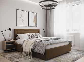 Фактура обивочного материала подбирается дизайнерами с учетом технологических и стилевых особенностей кровати.
