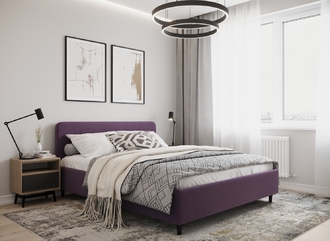 Царга, задающая пропорции, благодаря гладкости своей фактуры подчеркивает центральный элемент декора. Высокие опоры приподнимают фигуру кровати над полом и добавляют её образу визуальной легкости.