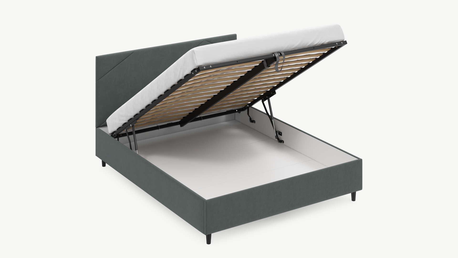 • Скрытая под основанием вместительная емкость без внутренних перегородок позволяет использовать всю площадь подкроватного пространства для хранения вещей.
