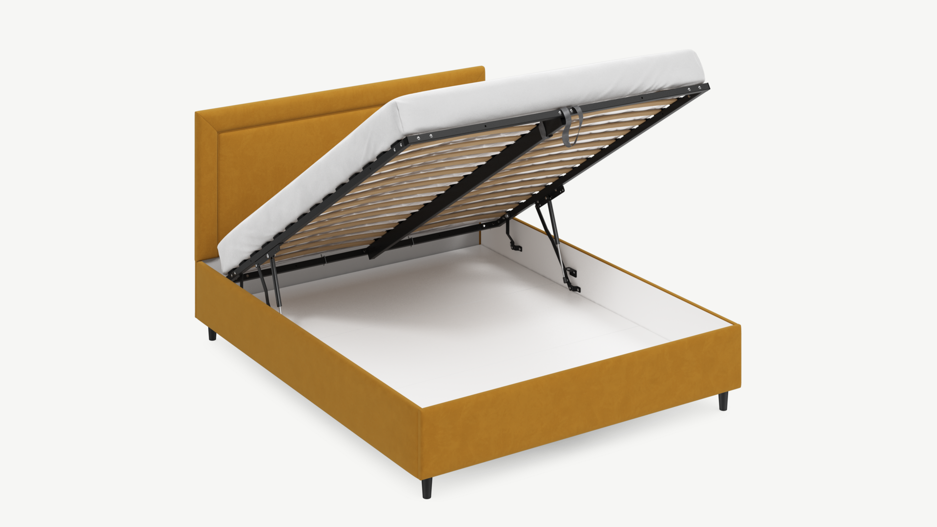 Регулируемый подъемный механизм с газовыми амортизаторами позволяет плавно и бесшумно поднимать и опускать спальное место.