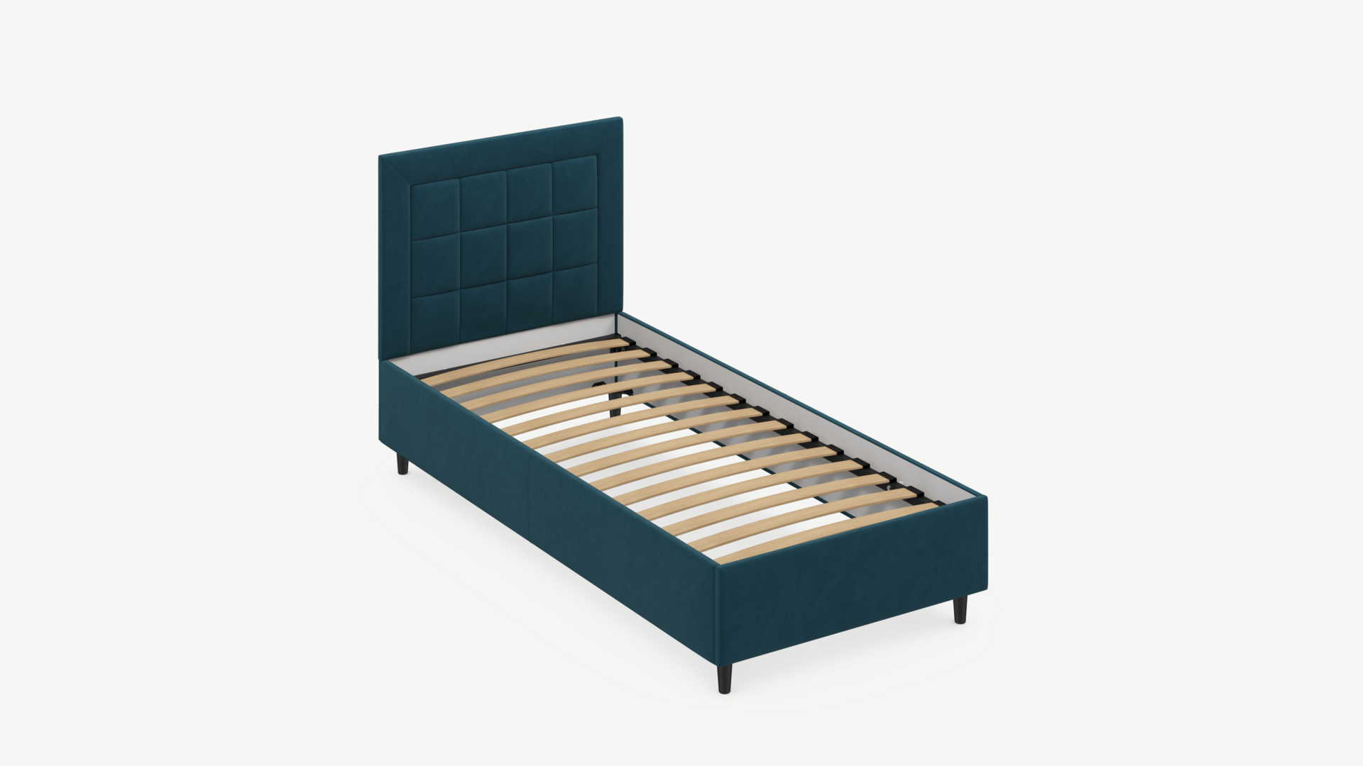 Изголовье декорировано рельефным рисунком стежки в крупный квадрат, получившим особую фактуру за счет глубины шва.