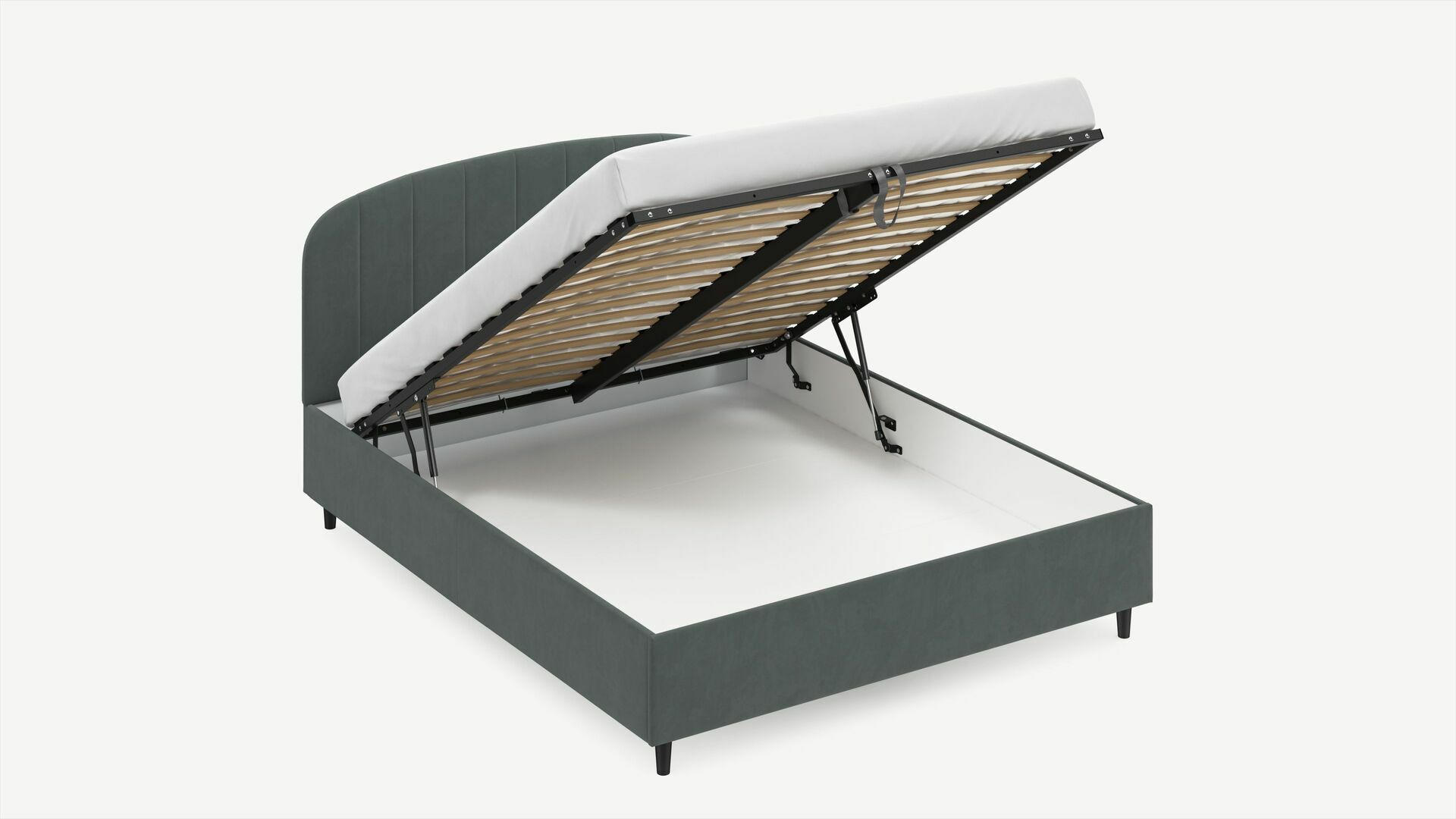 • Скрытая под основанием вместительная емкость без внутренних перегородок позволяет использовать всю площадь подкроватного пространства для хранения вещей.