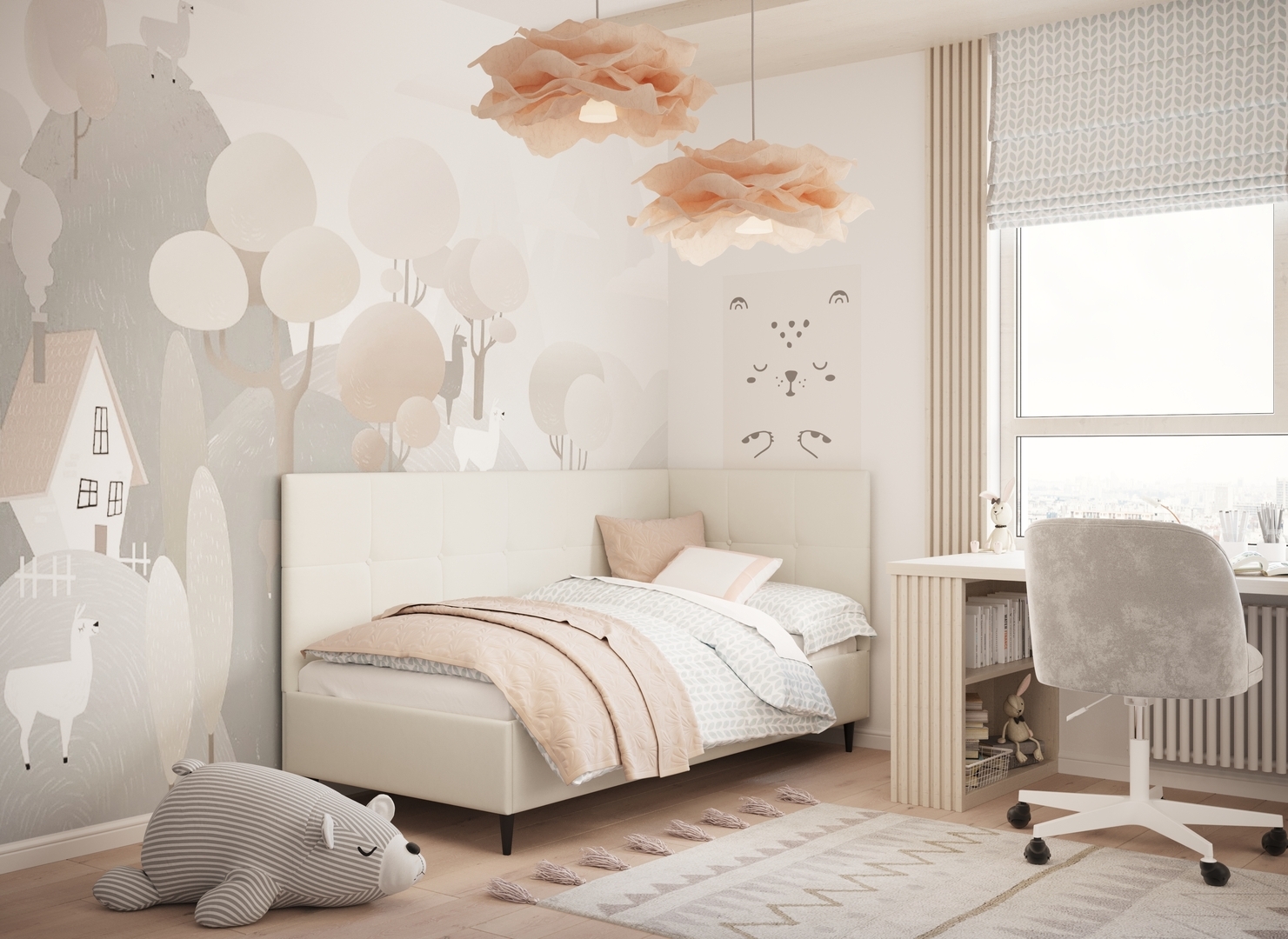 Угловая односпальная кровать MOON FAMILY 1261 с мягкой спинкой и изголовьем создаст в Вашей спальне ощущение уюта. Крупная квадратная стежка привносит в интерьер графических акцентов, а вставка из пуговиц наполняет пространство ощущением домашнего тепла.
