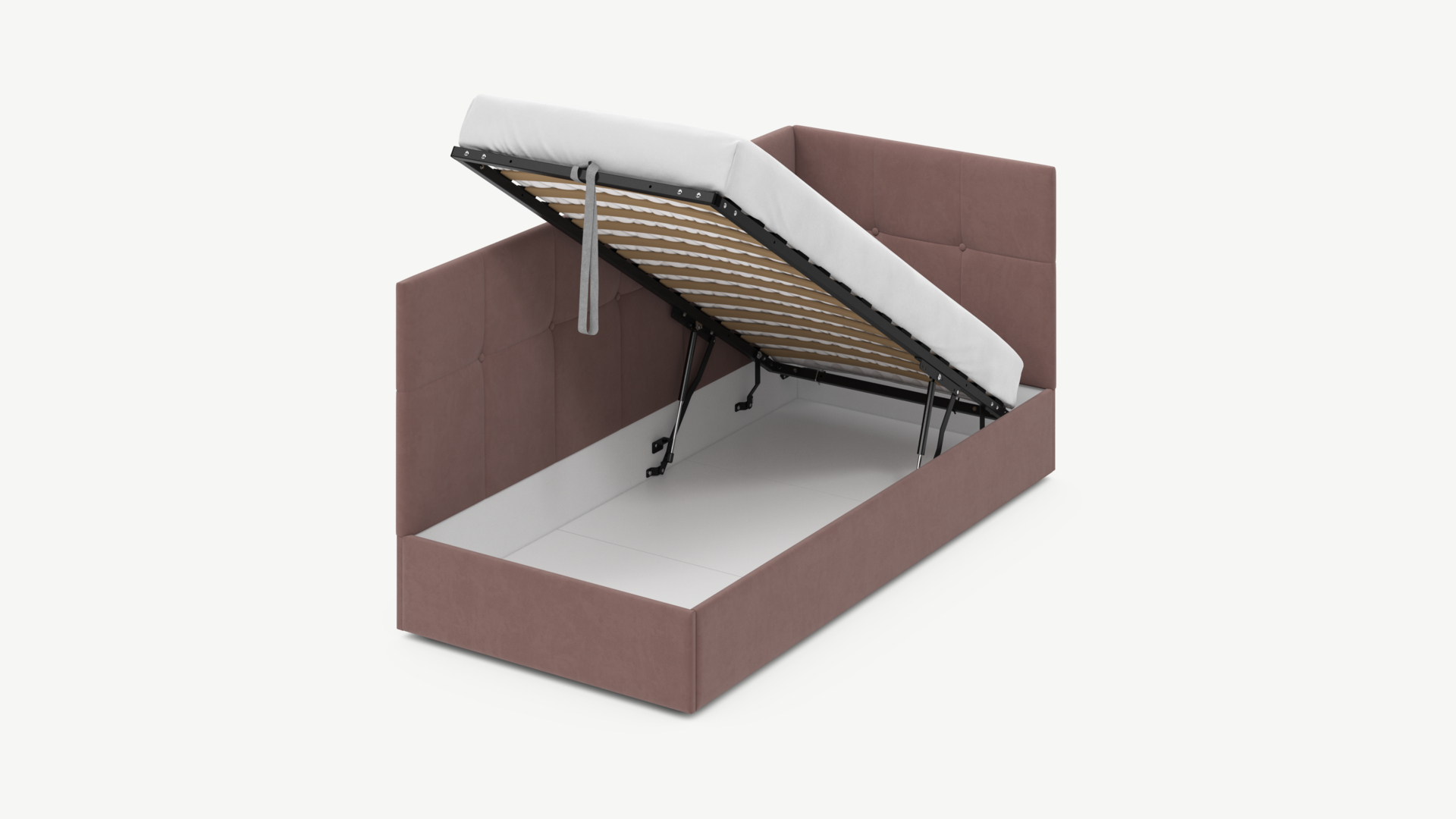 • Регулируемый подъемный механизм имеет два положения установки газовых амортизаторов в зависимости от веса матраса. Это дает возможность оптимально подстраивать угол подъема основания, а также плавно и бесшумно поднимать и опускать спальное место.