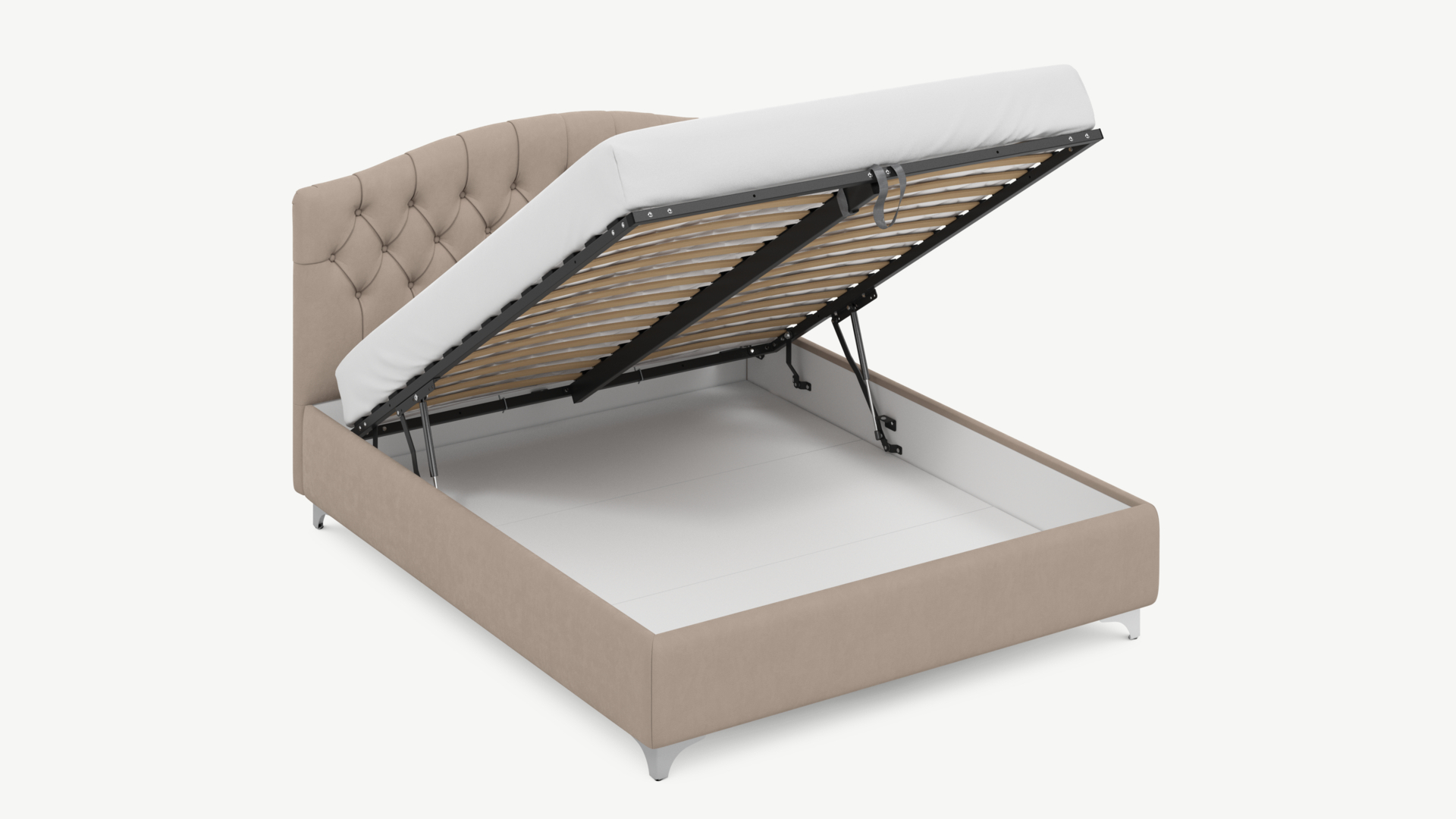 • Скрытая под основанием вместительная емкость без внутренних перегородок позволяет использовать всю площадь подкроватного пространства для хранения вещей.