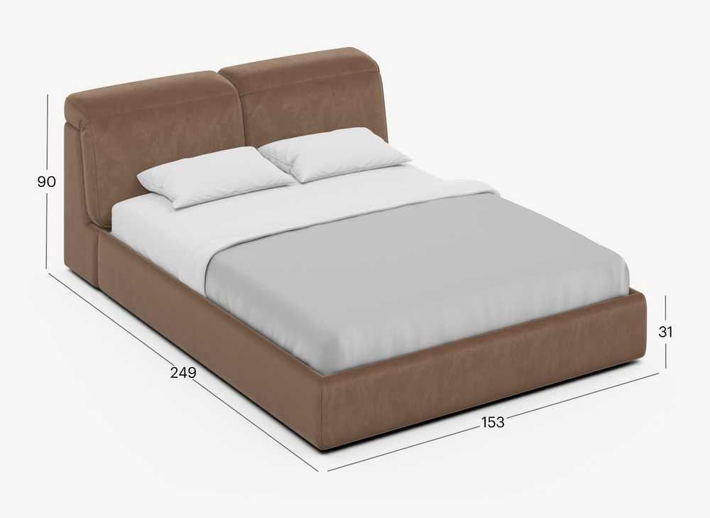 Изголовье подчеркивает эстетику MOON 1107, а также дарит дополнительный комфорт и уют спальному месту. Обратная сторона изголовья выполнена в мебельной ткани и позволяет ставить кровать в центре комнаты для зонирования пространства.