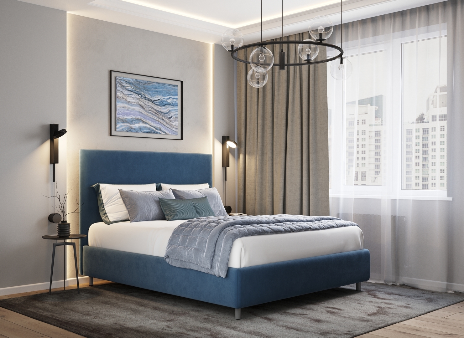Разнообразие цветовой палитры позволит подобрать желаемый оттенок обивочной ткани. Использование светлых цветов поддержит настроение стиля «Сканди». Приглушенные насыщенные оттенки оформят кровать в стиле «Лофт». Нейтральные оттенки в цвет интерьера обыграют спальню в Современном стиле.