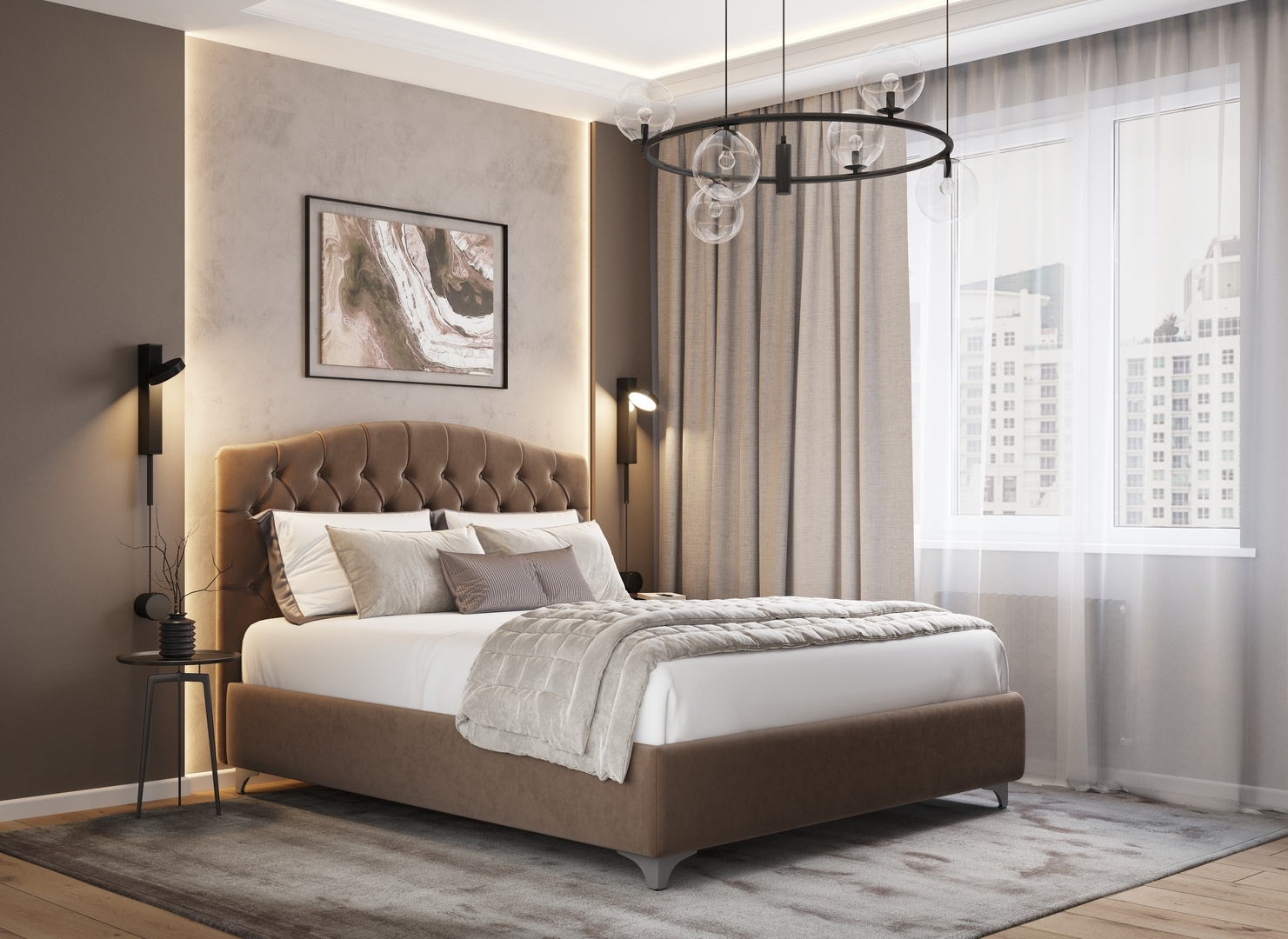 Разнообразие цветовой палитры позволит подобрать желаемый оттенок обивочной ткани. Использование светлых цветов поддержит настроение стиля «Сканди». Приглушенные насыщенные оттенки оформят кровать в стиле «Лофт». Нейтральные оттенки в цвет интерьера обыграют спальню в Современном стиле.