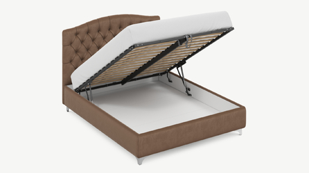 • Скрытая под основанием вместительная емкость без внутренних перегородок позволяет использовать всю площадь подкроватного пространства для хранения вещей.